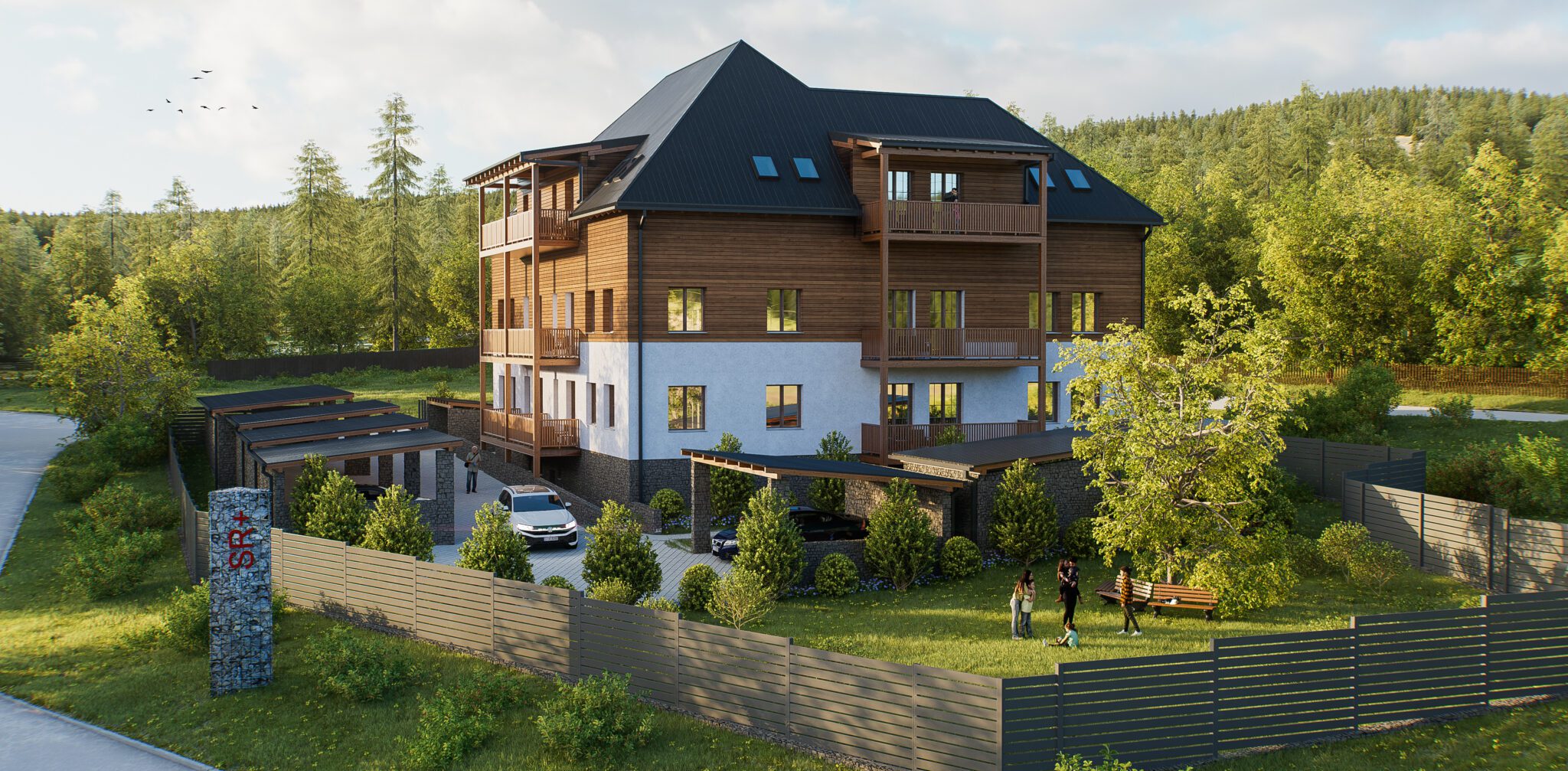 Apartmánové byty Suchá Rudnou poskytují skvělé zázemí pro zimní i letní aktivity v srdci Hrubého a Nízkého Jeseníku. Jedná se o kompletní přestavbu a modernizaci budovy, ze které zůstaly jen původní obvodové stěny, aby byl zachován ráz a časová charakteristika. Stavba tak kombinuje prvky klasické i moderní horské architektury tak, aby stavba byla v souladu s okolní přírodou. Jedním z takových prvků je např. kryté parkovací stání uvnitř areálu, které je částečně zapuštěno pod úroveň terénu tak, aby nenarušovalo krajinný ráz okolí.